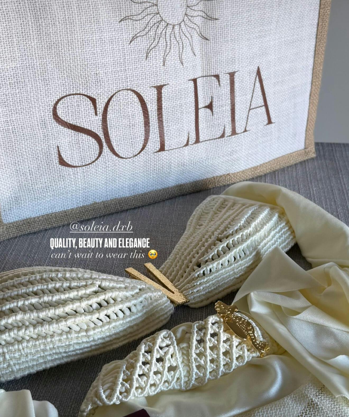 Each Soleia piece is handcrafted with delicate fabrics, artisanal finishes, and gold-plated details, requiring special care to preserve its beauty and quality.